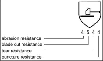In general EN420 standard specifies the mechanical hazards gloves basic legend. The EN388 standard was refined this provision, see Figure: